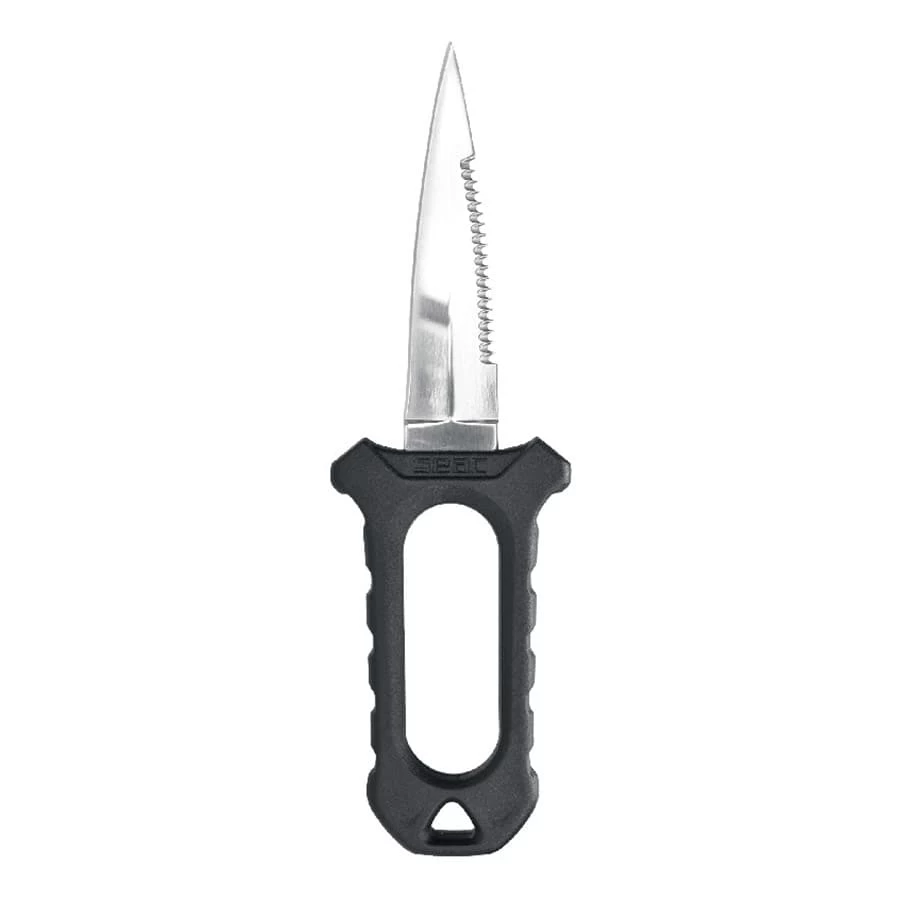 Das Seac Devil HD Tauchermesser hat eine Stiletto-Klinge aus Edelstahl, die speziell für das Speerfischen entwickelt wurde. Es hat eine hervorragende Eindring- und Schneidefähigkeit an geraden und gezackten Kanten. Inklusive Push & Pull Out-Schneide für einfache Einhandbedienung, auch mit Handschuhen. Das Messer hat ein Befestigungsloch für Leinen am Ende des Griffs.