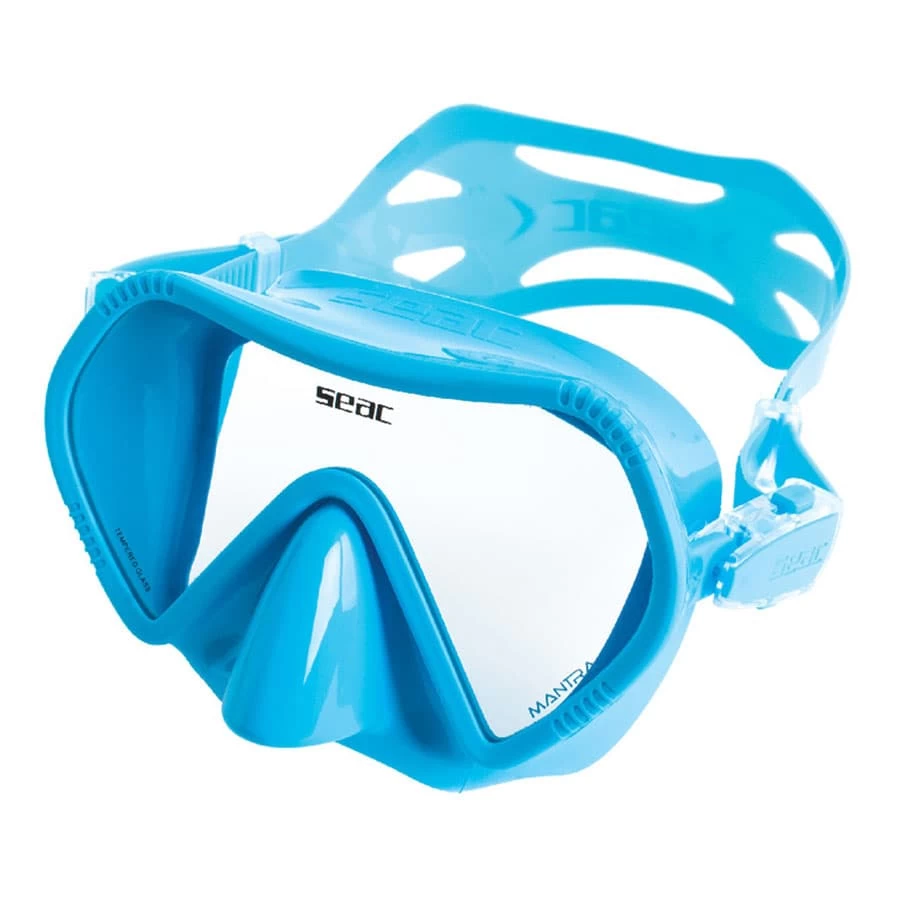 Die Seac Mantra Tauchermaske ist für Erwachsene und Kinder konzipiert. Jüngere Taucher (aber auch Erwachsene mit besonders schlanken Gesicht) können die Maske in reduzierten Abmessungen für eine bessere Haftung am Gesicht wählen. Die Tauchermaske besteht aus gehärteten Glasmonolinsen mit einer „rahmenlosen“ Struktur, die den Rahmen aus weichem Silikon mit dem Gesicht verschmelzen lässt. Es ist einfach zu bedienen und einzustellen, dank der faltbaren Doppelknopfschnallen auf beiden Seiten der Maske. Das breite Silikonband hinter dem Hals hält die Maske fest im Gesicht und sorgt für hohen Tragekomfort.